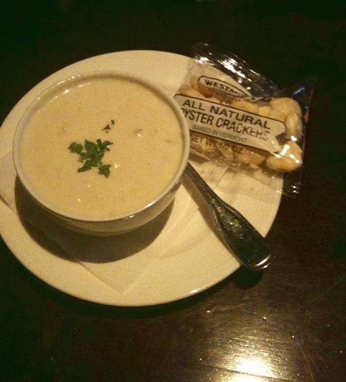 Fabulous Fabs, hehe 🙂 Ce n’était pas une clam chowder, celle-là, mais tout simplement une chowder, avec du crab et d’autres trucs comme ça dedans. Miam!