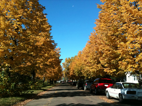 Je suis amoureuse des couleurs de cette photo. Ce ciel, ces feuilles dorées!