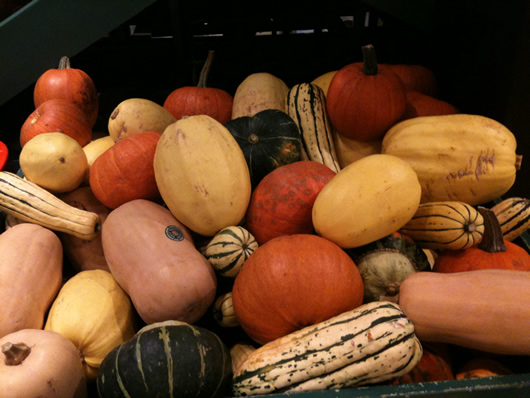 6. Les roses, là, ce sont des butternut selon mon livre sur les courges. Je viens d’en acheter à la coop d’ailleurs. Je fais presque la même recette que Fabulous Fabs mais j’y ajoute des lanières de lard cru, miam!