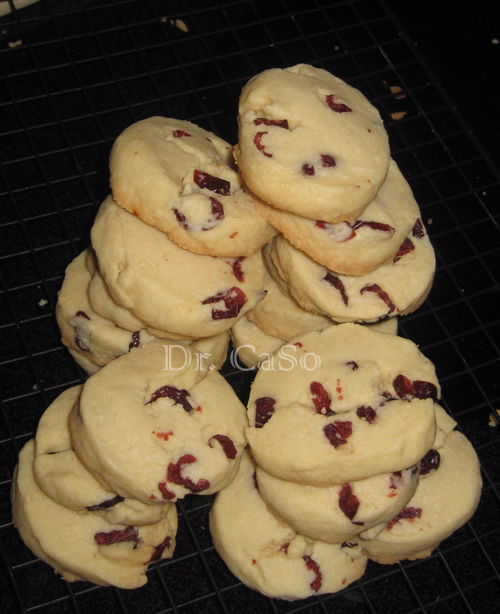 Pour ce qui est des biscuits, est-ce que ça aurait aidé de faire macérer un peu les canneberges dans quelque chose comme du jus d’oranges… ou mieux du Cointreau ou quelque chose d’alcoolisé du genre avant de les intégrer à la pâte? En fait, si je comprends bien, il s’agit là de biscuits sablés aux canneberges, en fait…