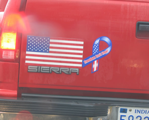 elPadawan, ben justement, dans le post original, je parlais de ça (c’était juste après le début de la guerre en Irak, 9/11 était encore très proche des gens là-bas, années du Patriot Act et tous les changements de lois d’immigration, d’aviation, etc.), et je disais que dans le context de l’Indiana, ça voulait bien dire la liberté n’est pas gratuite, mais dans mon context, ça voulait plutôt dire que la liberté n’était plus libre.