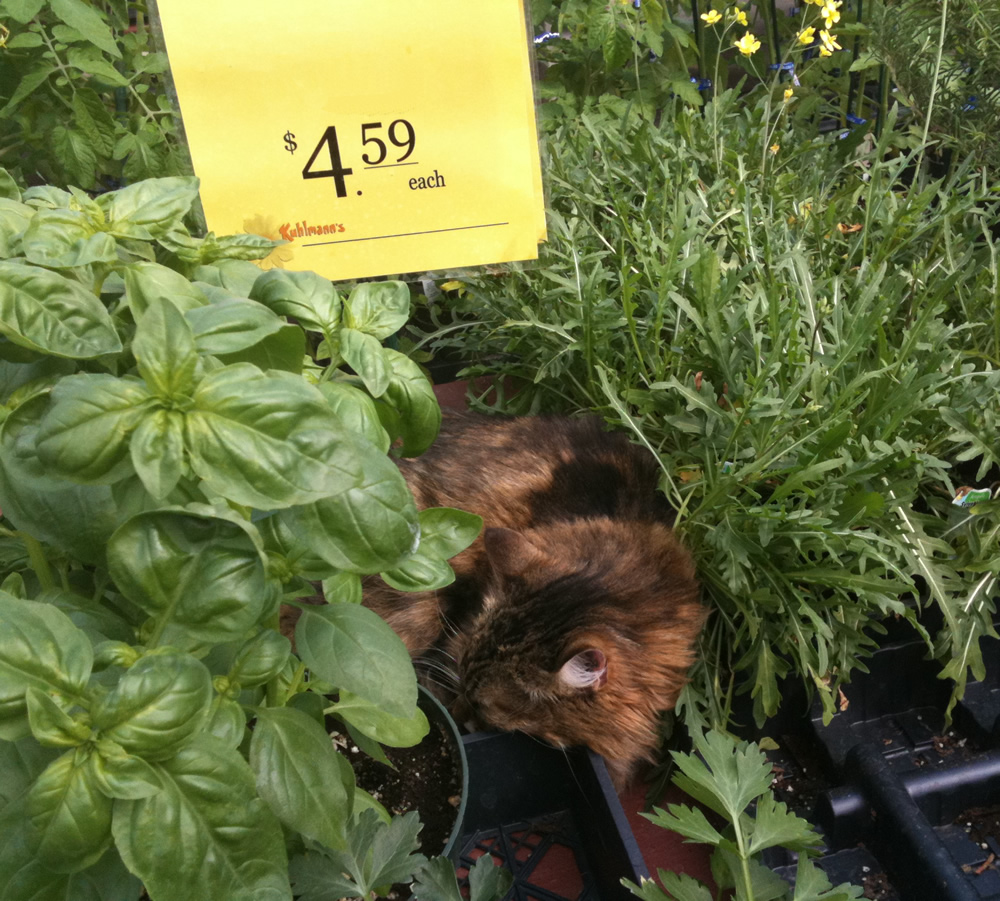 5. Je comprends tes envies de fleurs et d’herbes aromatiques. Samedi je suis allée acheter un gros pot d’herbes à chat mais de l’herbe sauvage, pas la grosse herbe habituelle; et Chamade ne la quitte plus, elle broute avec délicatesse, laissant mes plantes vertes tranquilles pour un temps.
