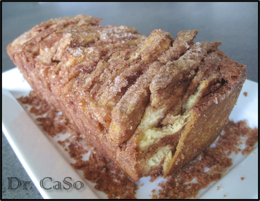 Réussite: 8/10. Un gâteau pré-coupé, quelle excellente idée! C’était très long et compliqué à faire mais vraiment marrant à manger, pas besoin de couteau, il suffit de peler les tranches les unes après les autres! Ma levure n’a pas très bien marché donc le pain a très peu monté et était un peu compacte et bourratif. C’était très bon avec un verre de lait, mais il faudra que je réessaye avec de la levure plus fraîche, et la prochaine fois, je mettrai un chouilla moins de cannelle et de noix de muscade!