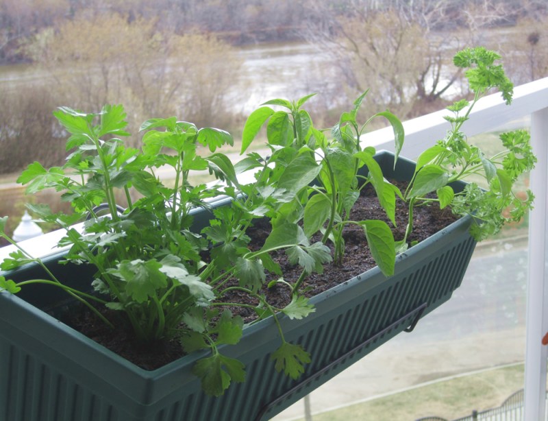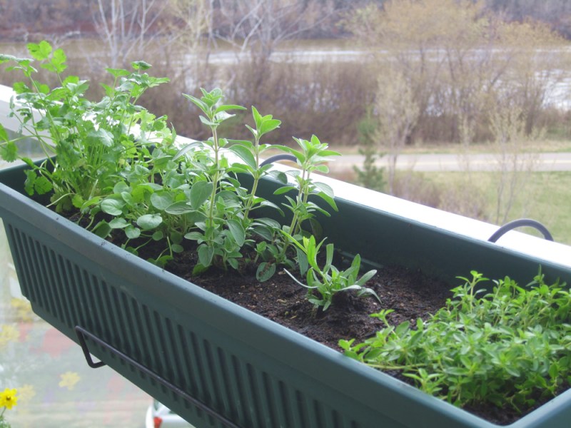 Eh oui, ça faisait des lustres que j’avais envie d’un peu de verdure et d’herbes aromatiques et de fleurs sur mon balcon et voilà un rêve réalisé!