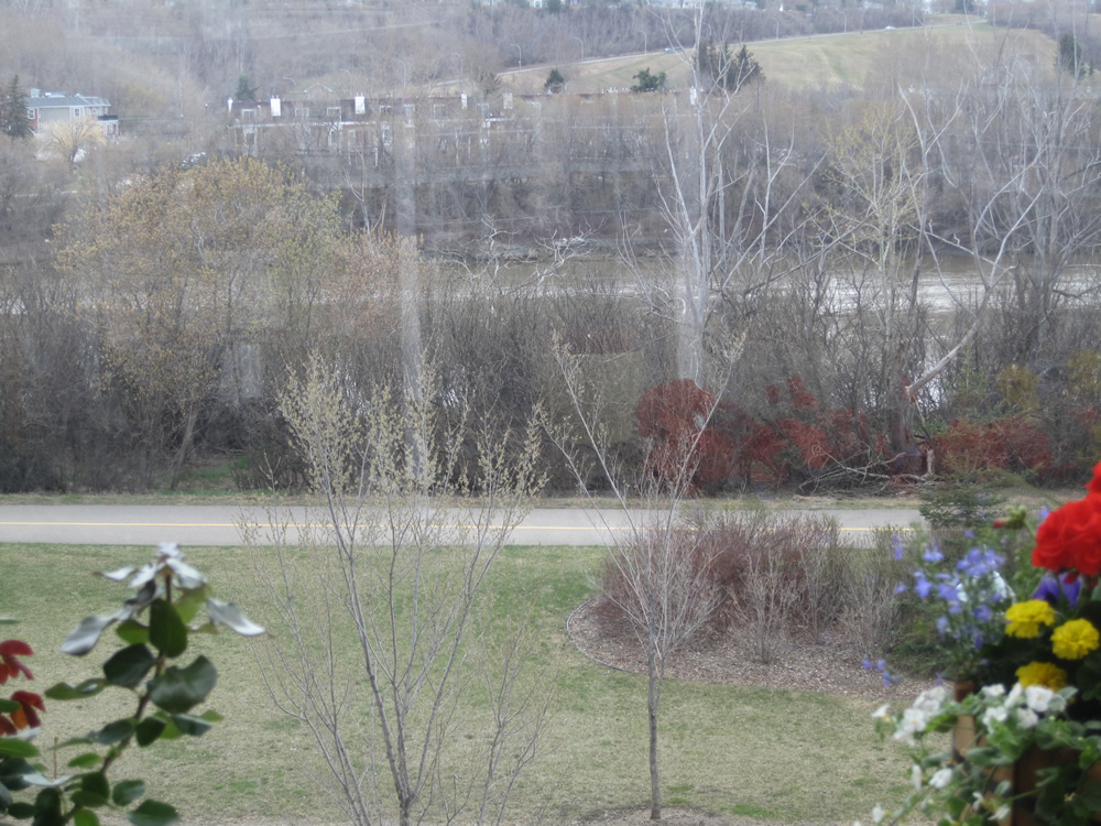 … tout ça pour faire semblant que le printemps est revenu! Vous pouvez remarquer que la neige a pratiquement entièrement fondu et que l’herbe commence tout juste à reverdir, par ici, mais seuls quelques rares arbres ont déjà des petits bourgeons. En gros, tout est encore brun et moche.