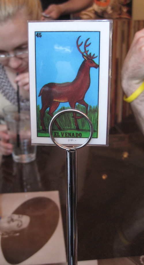 Au fait, pour ta culture personnelle la photo d’un petit animal comme tu dis est en realite une carte d’un jeu tres populaire au Mexique la loteria (bingo). Toi tu es tombee sur le cerf mais tu aurais pu aussi bien avoir l’arbre le cactus ou la couronne 😉 Je ne sais pas si ils osent distribuer le squelette au Mexique ca ne generait personne, a ATPN ca risque de ne pas tres bien passer…