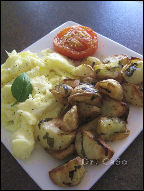 Bref, pour tes patates, si tu aimes, je te conseille d’y ajouter des gousses d’ail en chemise et au lieu du basilic, de mettre du thym et quelques brins de romarin … MMMMMhhh, une tuerie !!