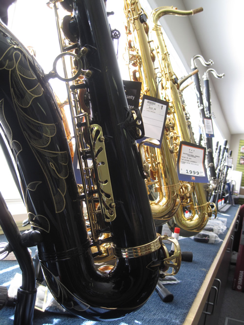 Là, je n’ai pas voulu dire “bonjour, je voudrais prendre quelques photos de vos saxophones s’il-vous-plaît” alors j’ai dit “bonjour, je voudrais voir vos violons altos, il m’en faut un de 14″ s’il-vous-plaît…”