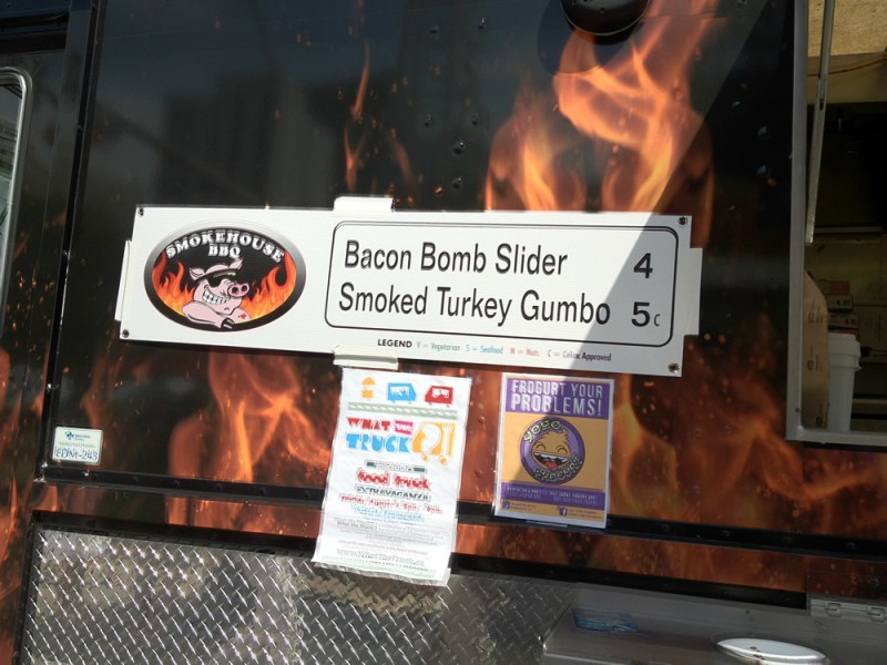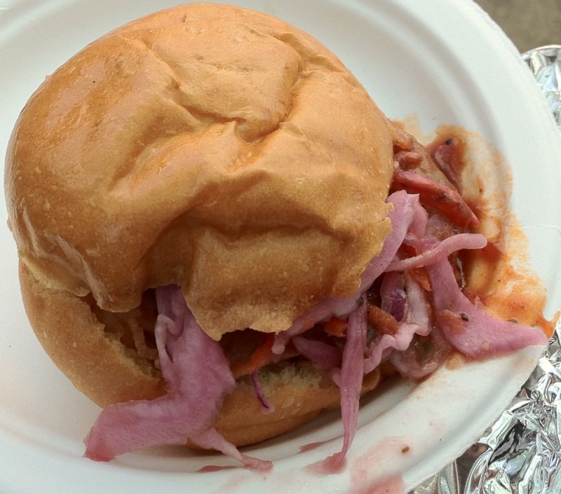 Le food truck Smokehouse BBQ offrait deux options et j’ai essayé le Bacon Bomb Slider…. … qui n’a pas l’air exquis, comme ça, mais qui en réalité l’était! C’était de la viande de porc cuite à la perfection dans une sauce BBQ épicée et délicieuse, avec par-dessus, un coleslaw bien vinaigré (et non pas à la mayonnaise comme celui de Filistix), ce qui faisait un excellent contraste d’acidité avec la viande et la sauce BBQ.