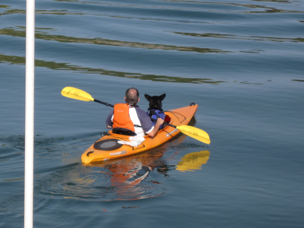 Il a vraiment besoin d’un gilet de sauvetage le chien? Ou c’est encore une loi albertaine à la noix qui précise que tout occupant d’un kayak sur l’eau doit être revetu de cet attirail?