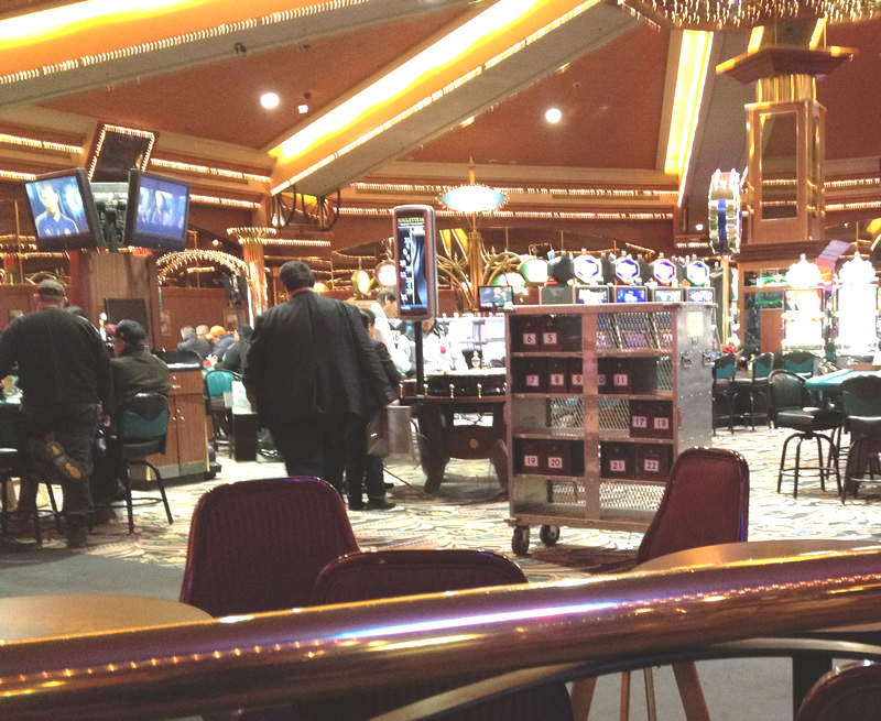 Là on voit le chariot de boîtes vides redistribuées à chaque table de jeu.