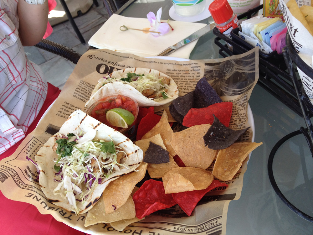 Après ces aventures bien peu palpitantes, nous sommes allées déjeuner à l’hôtel Moana Surfrider qui nous avait bien plu, et plonger les pieds dans l’eau. Les fish tacos et le hamburger n’étaient pas mauvais. Les frites à l’ail étaient délicieuses! Les cocktails sans alcool étaient divins!