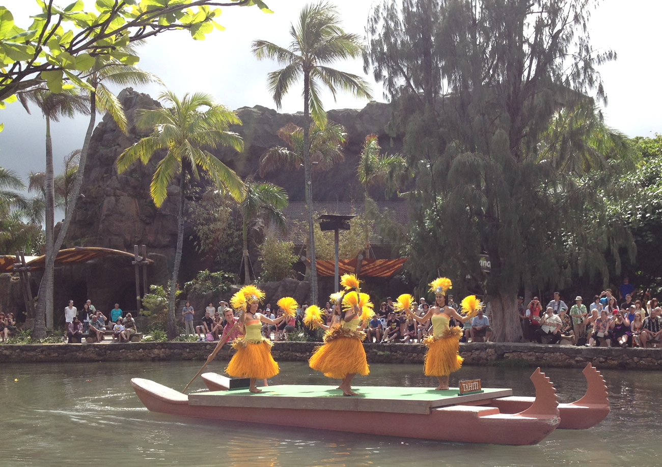 Sur la côte nord de l’île d’Oahu, à environ une heure et demi de route de Waikiki, se trouve le Centre Culturel Polynesien (le PCC). Au début, je n’était pas sûre de vouloir y aller parce que j’avais peur des trucs kitsch et attrape-touristes, mais des amis à moi qui travaillent juste à côté (à l’Université de Brigham Young Hawaï, BYUH) m’ont dit que c’était vraiment bien, alors on a décidé d’y aller.
