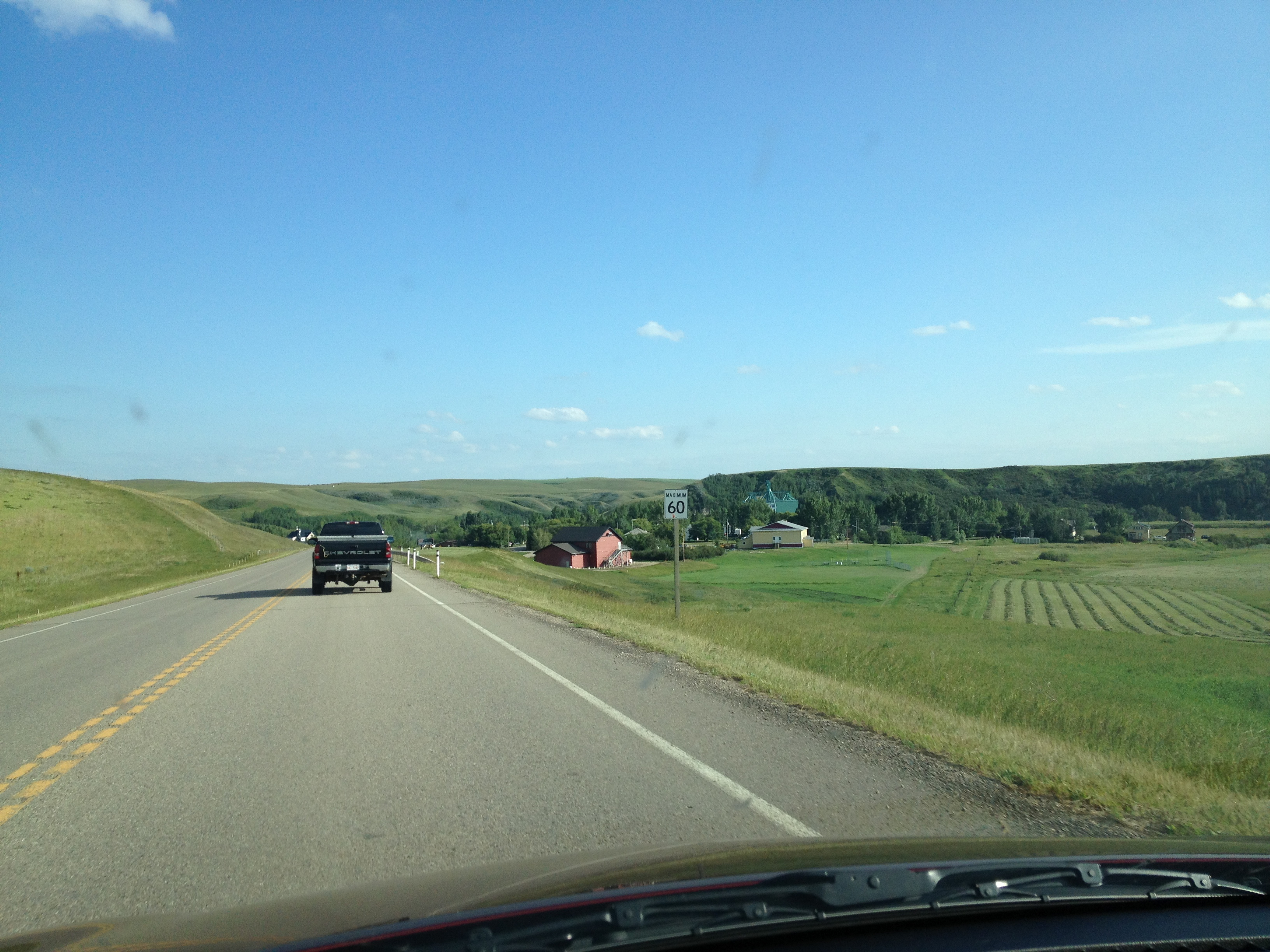 Voilà quelques photos (cliquez dessus pour les voir en plus grand) de cet après-midi de voiture au milieu de la prairie et de notre arrivée dans un grand trou invisible depuis la prairie, trou dans lequel se trouve Drumheller. L’arrivée dans la ville était spectaculaire! Et après avoir cherché un peu notre hôtel et déposé nos sacs, nous sommes reparties pour Rosedale, minuscule hameau à une dizaine de kilomètres de Drumheller.