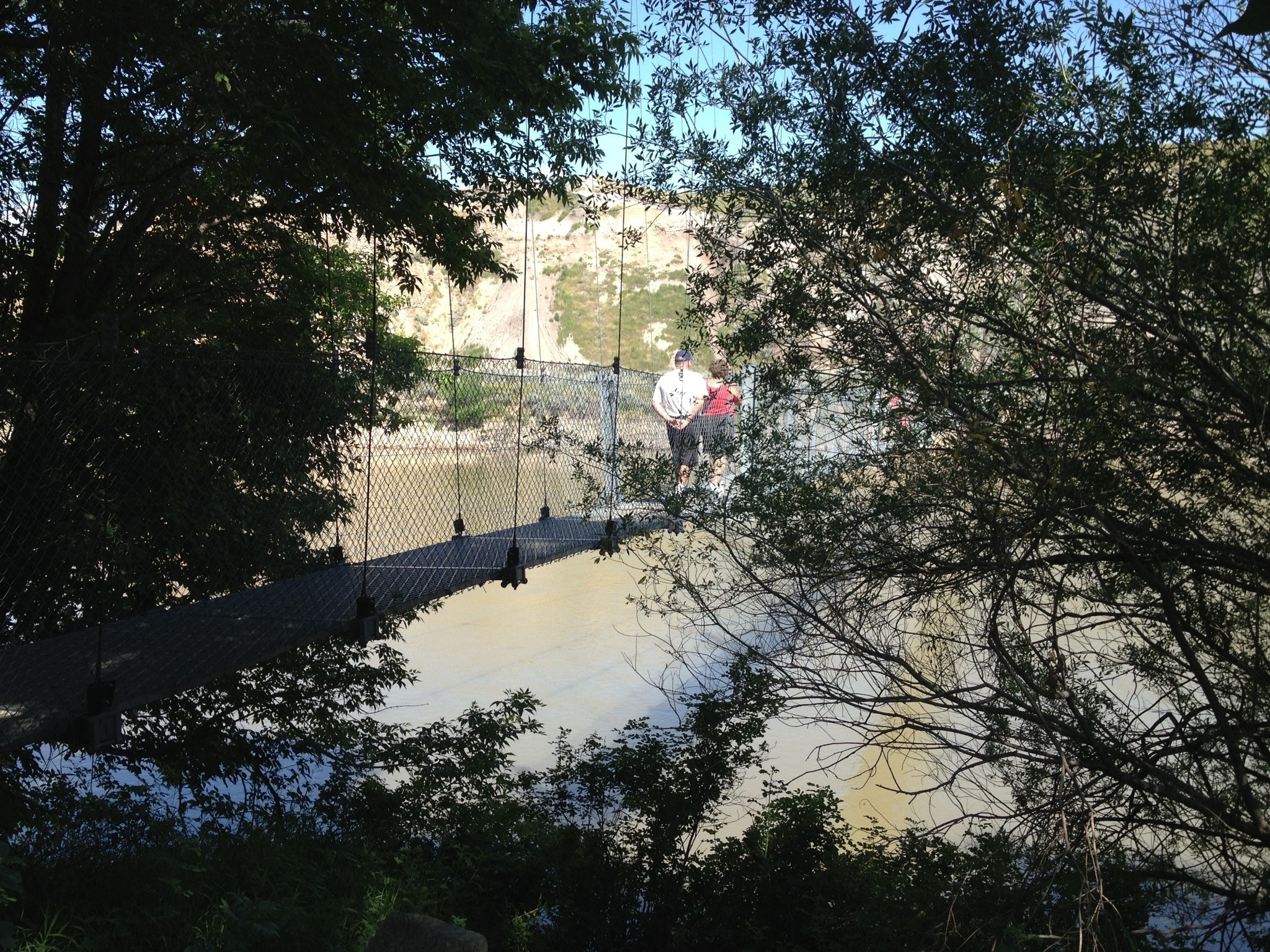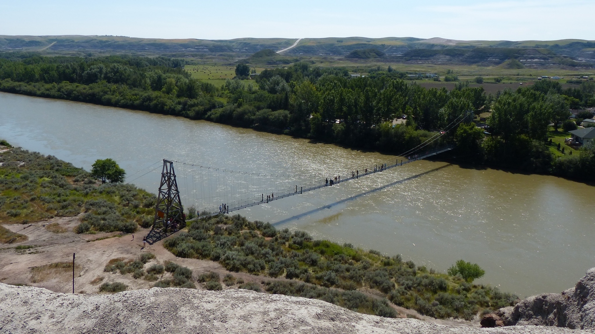 Aujourd’hui, ce pont fait partie des petits trésors à découvrir le long de la rivière et autour de Drumheller. De grands panneaux indiquent clairement qu’il ne doit y avoir que 20 personnes à la fois sur le pont mais les touristes ne savent visiblement pas compter!