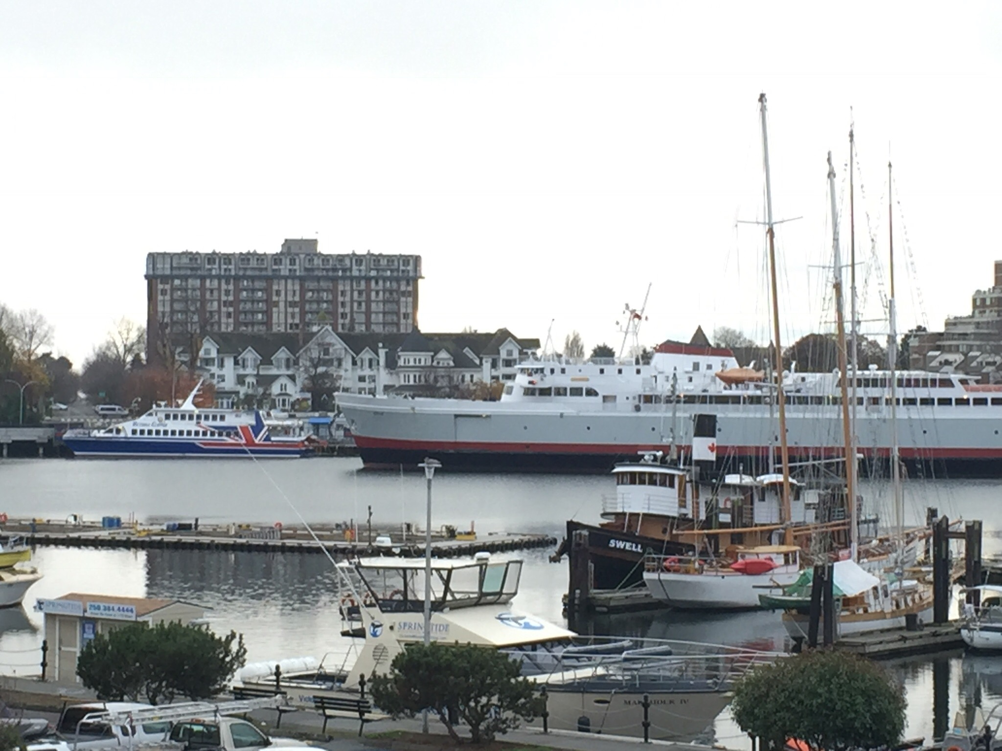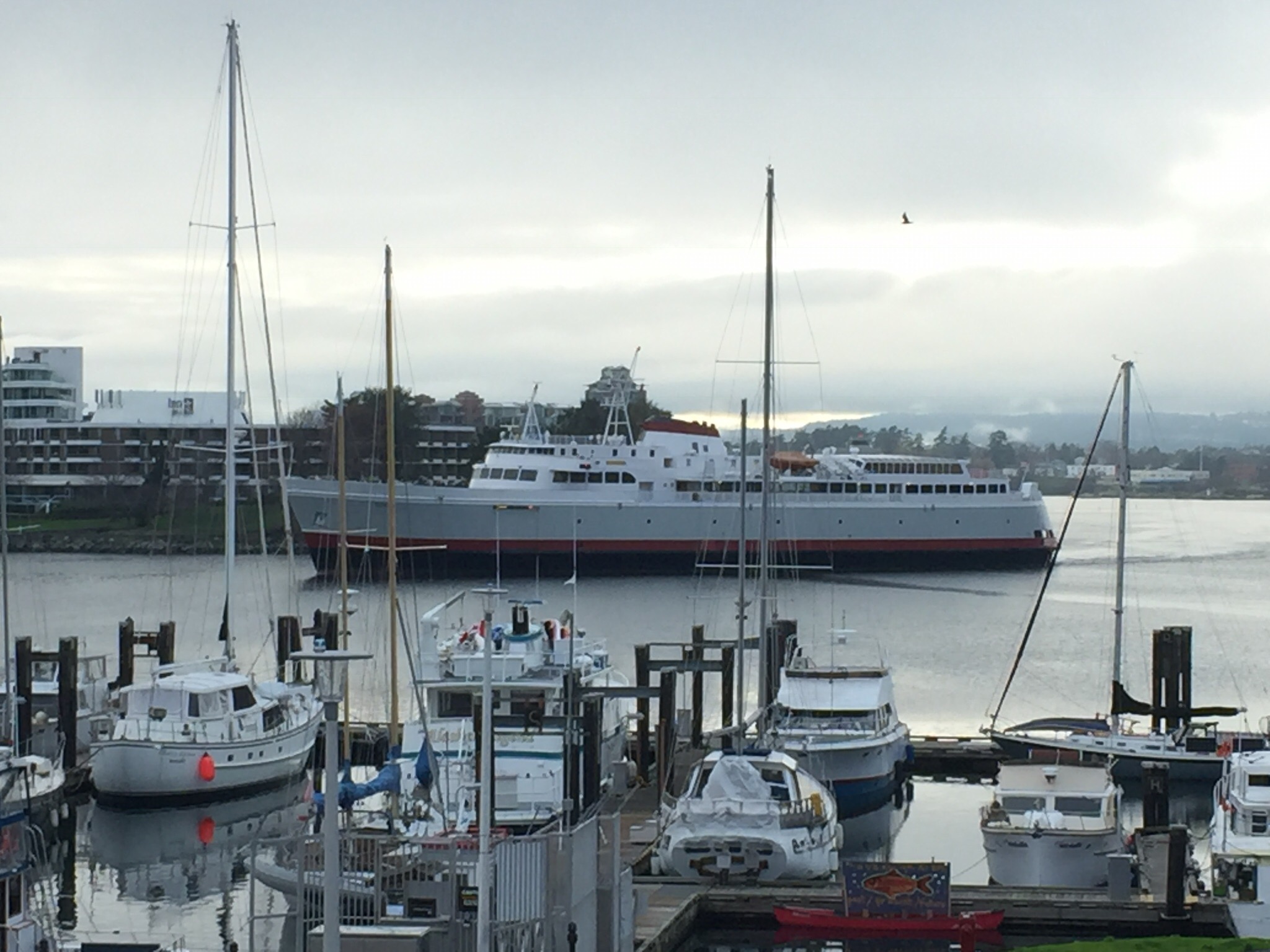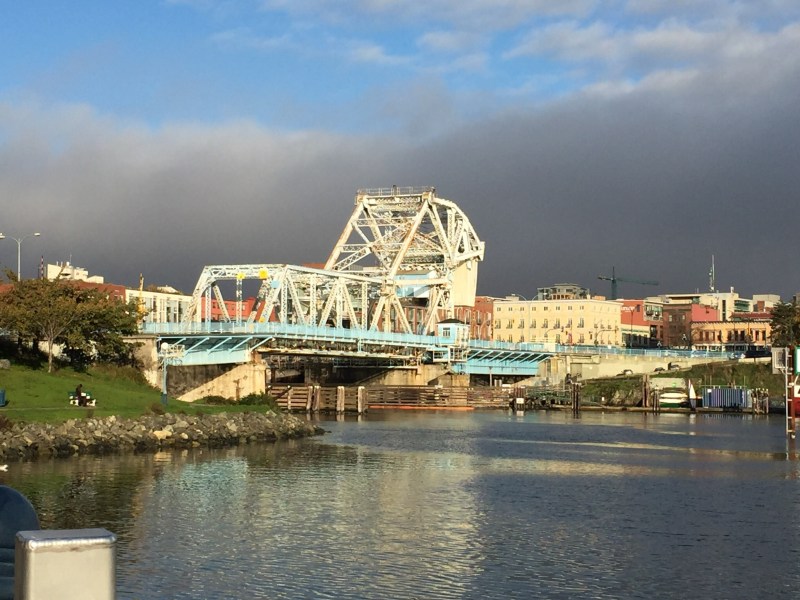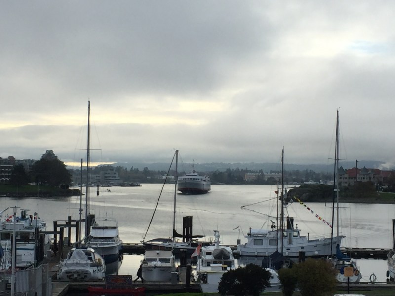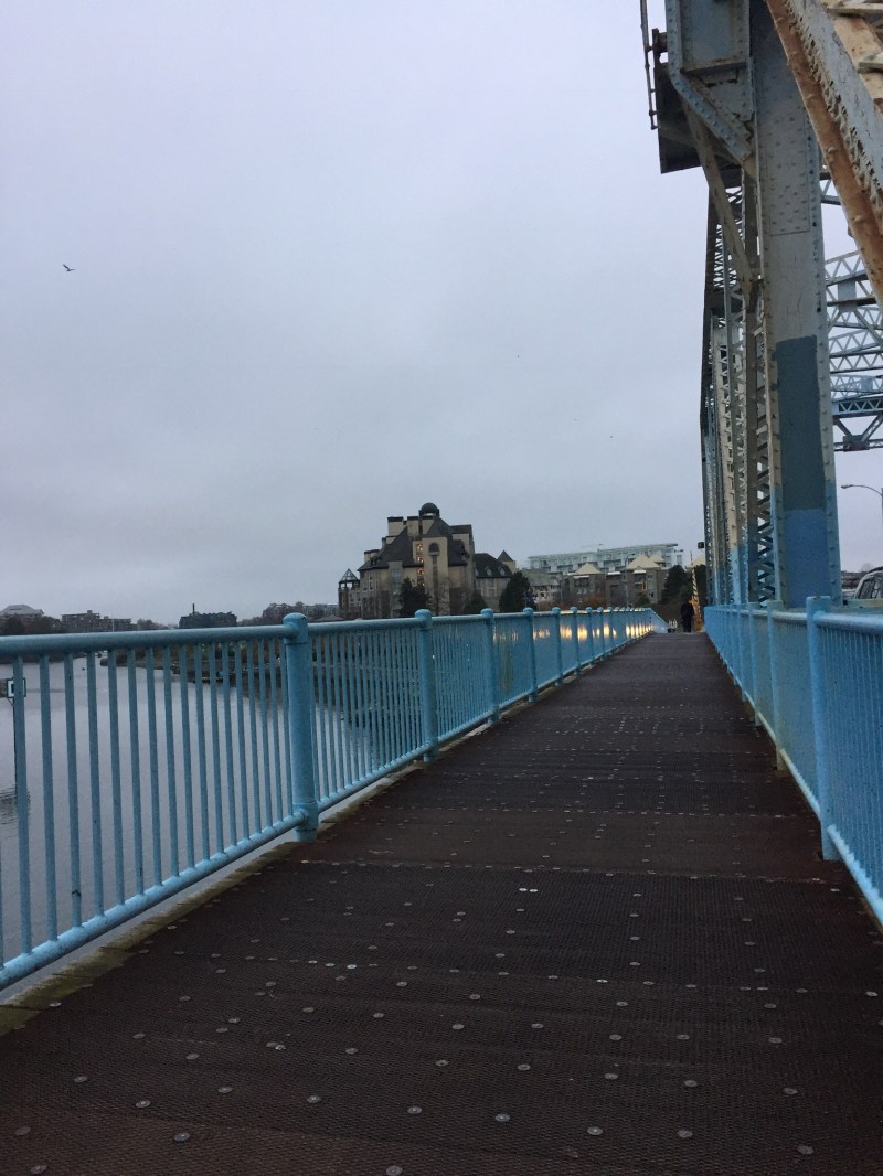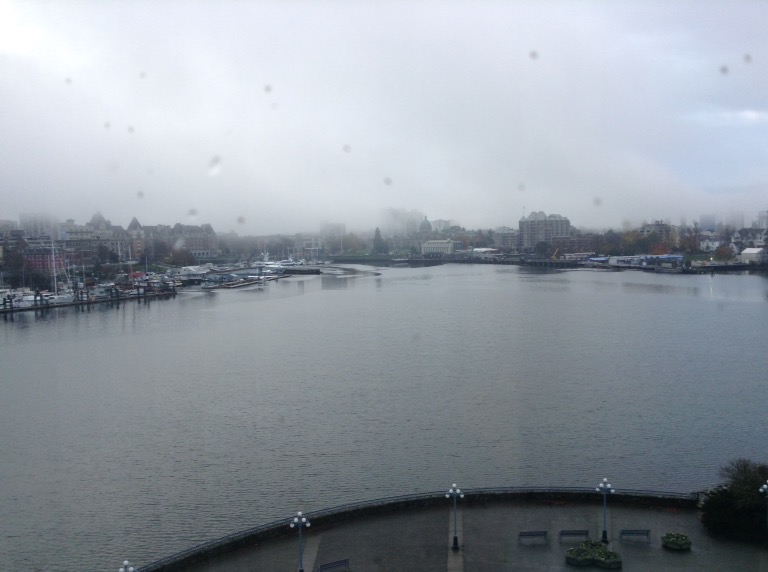 Et puis j’ai très mal dormi… et me suis réveillée très tôt… Mais ce n’était pas grave, j’ai vu le jour se lever sur la baie, sous la pluie… J’ai papoté avec ma frangine… J’ai réfléchi aux conséquences des résultats des élections américaines en ce qui concerne ma recherche d’emploi… J’ai essayé de quitter fesse de bouc mais je ne peux pas parce que ça annulerait aussi mon compte professionnel… J’ai bouquiné un bon moment au lit (le dernier Kathy Reichs)…  Et j’ai finalement pris un taxi pour aller sur le campus de la grande université de la ville pour aller dire bonjour à ma collègue qui a le même boulot que moi ici.