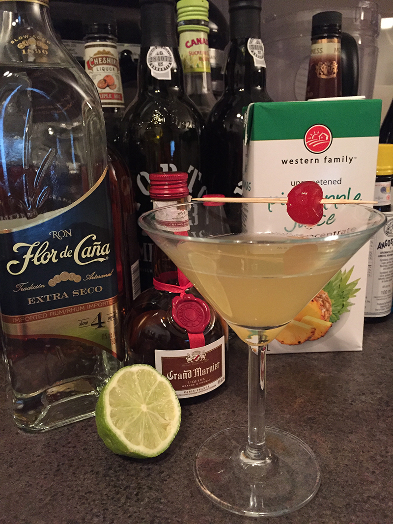 Réussite: 7/10. Ca aurait été meilleur avec des glaçons et du rhum vieux ou ambré parce que là, avec mon rhum blanc, ce n’était pas très intéressant, un peu banal et uniforme.