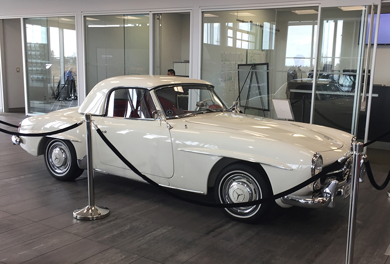 Si tu avais envie d’en acheter une comme la blanche, la dernière de cette série, tu pourrais peut-être demander à Justin Trudeau s’il accepterait de te vendre celle que son père (ancien premier ministre du Canada) possédait… Son frère Alexandre, qui habite toujours la belle maison Art déco de l’avenue des Pins, pas très loin de chez moi, a conservé la maison, et Justin la Mercedes sport décapotable de son père. C’est une 300SL… mais, outre sa valeur sentimentale, elle vaut maintenant plus d’un million de dollars…