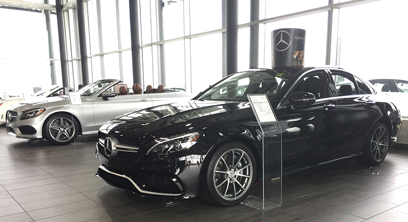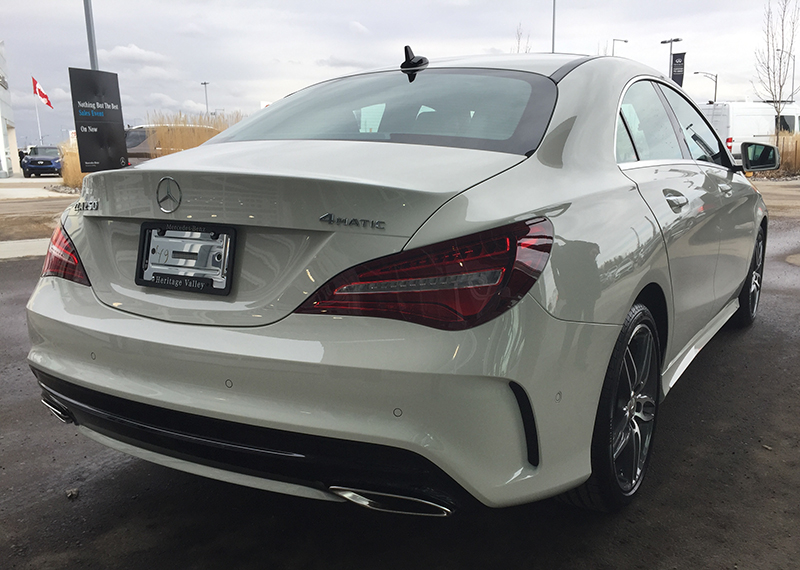 Et de fait, mon poisson d’avril n’en était un qu’à moitié. Je suis bien allée chez le concessionnaire Mercedes mais aujourd’hui, samedi, et avec mon copain Jerry, pas toute seule. Et j’ai bien trouvé une voiture que j’adorais, celle que je vous ai décrite, mais elle n’était pas 4MATIC (4×4) et donc je ne l’ai pas achetée. Mais le charmant vendeur, qui s’appelait en réalité Ben, et qui a bien essayé de me vendre un truc plus cher (la jolie blanche ci-dessous, mais qui est neuve et en version “sportive”), m’appellera quand il aura trouvé la voiture parfaite à 100%.
