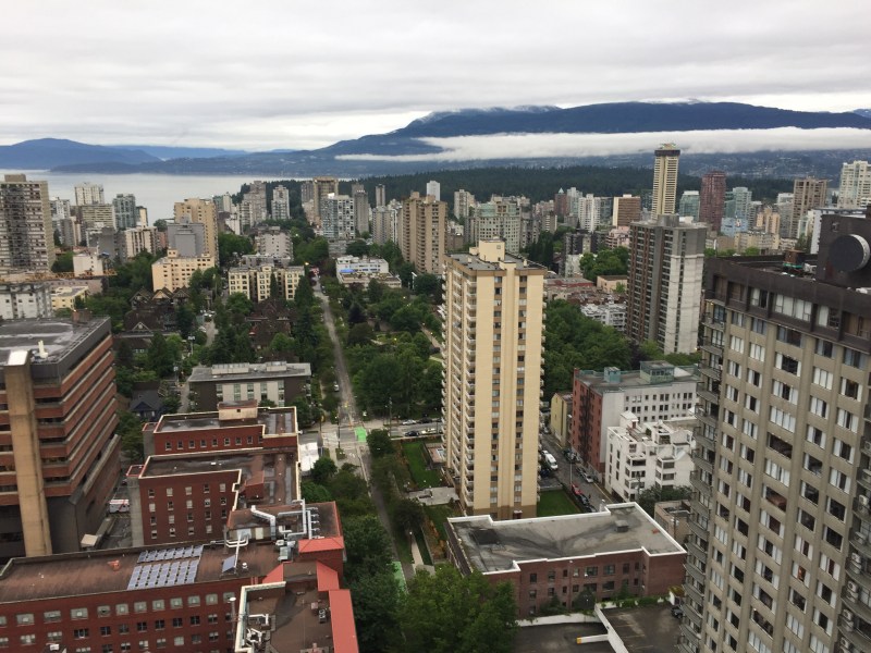 sur la 1ère photo de Vancouver, tu vois l’immeuble en haut à droite, avec une excroissance sous le toit, c’était notre hôtel, et l’excroissance est le resto qui tourne sur lui-même sur 360°, tu as une belle vue sur V. en mangeant,