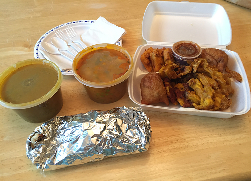 Ce soir, j’ai commandé des samosas végétariens (mon truc préféré!) et autres petits délices en entrée, un daal (lentilles), et un khumb lajawab (légumes dans une sauce crèmeuse). Avec du garlic naan. Miam!!! Comme j’ai gueulé la dernière fois que j’ai reçu une commande parce ce n’était pas exactement ce que je voulais, j’ai un crédit de $7, donc finalement ce dîner pour deux jours ne me revient plus trop cher.