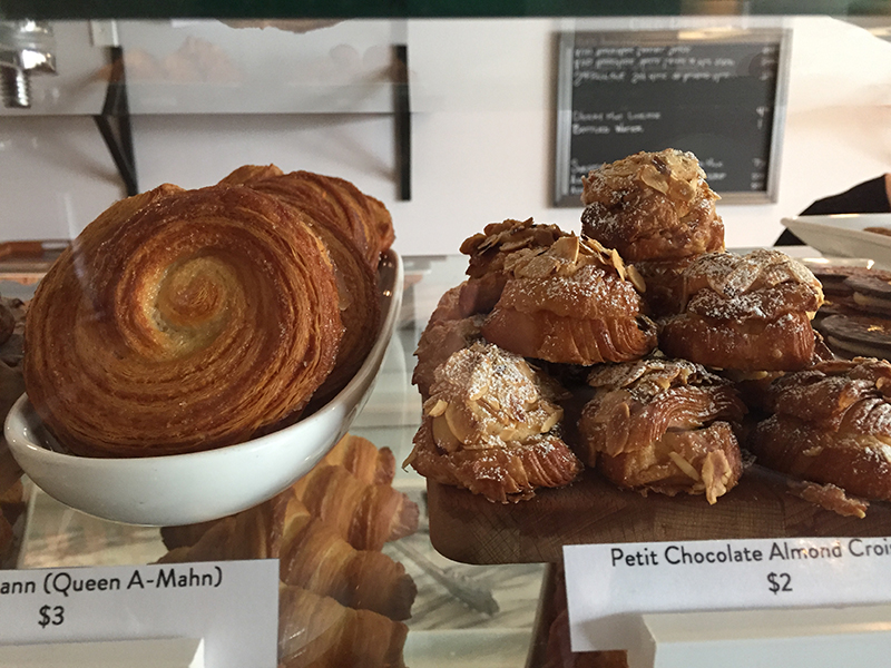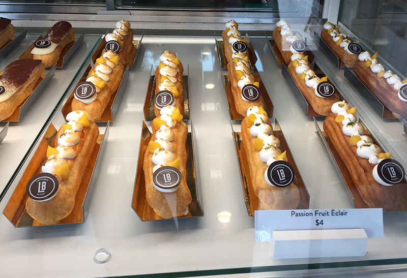 Je voulais tout essayer… et finalement j’ai pris un éclair forêt noire et un pain au chocolat à emporter. Leurs pains au chocolat sont de très loin les meilleurs de la ville! L’éclair était très décevant par contre, très peu de goût, pas de kirsch, un peu de confiture de cerises sans goût à l’intérieur, une vague cerise sur le dessus, bof. J’aurais dû prendre une de leurs exquises tartes au citron, je vais devoir y retourner bientôt pour ne pas rester sur ma faim 😉