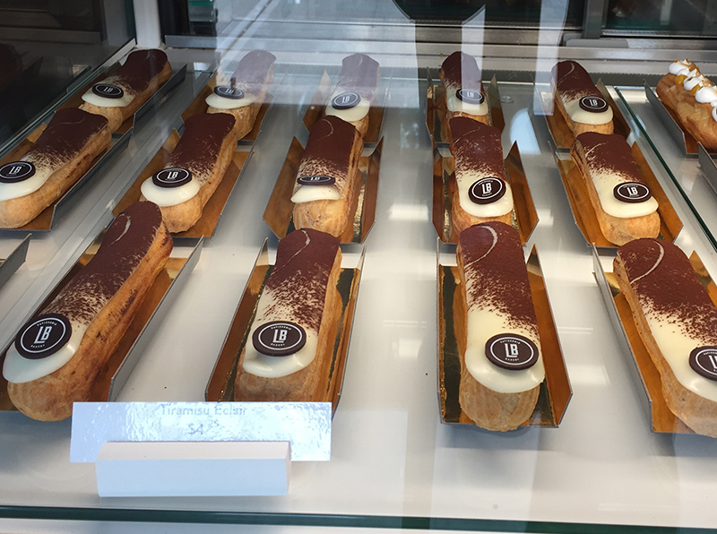 Je voulais tout essayer… et finalement j’ai pris un éclair forêt noire et un pain au chocolat à emporter. Leurs pains au chocolat sont de très loin les meilleurs de la ville! L’éclair était très décevant par contre, très peu de goût, pas de kirsch, un peu de confiture de cerises sans goût à l’intérieur, une vague cerise sur le dessus, bof. J’aurais dû prendre une de leurs exquises tartes au citron, je vais devoir y retourner bientôt pour ne pas rester sur ma faim 😉