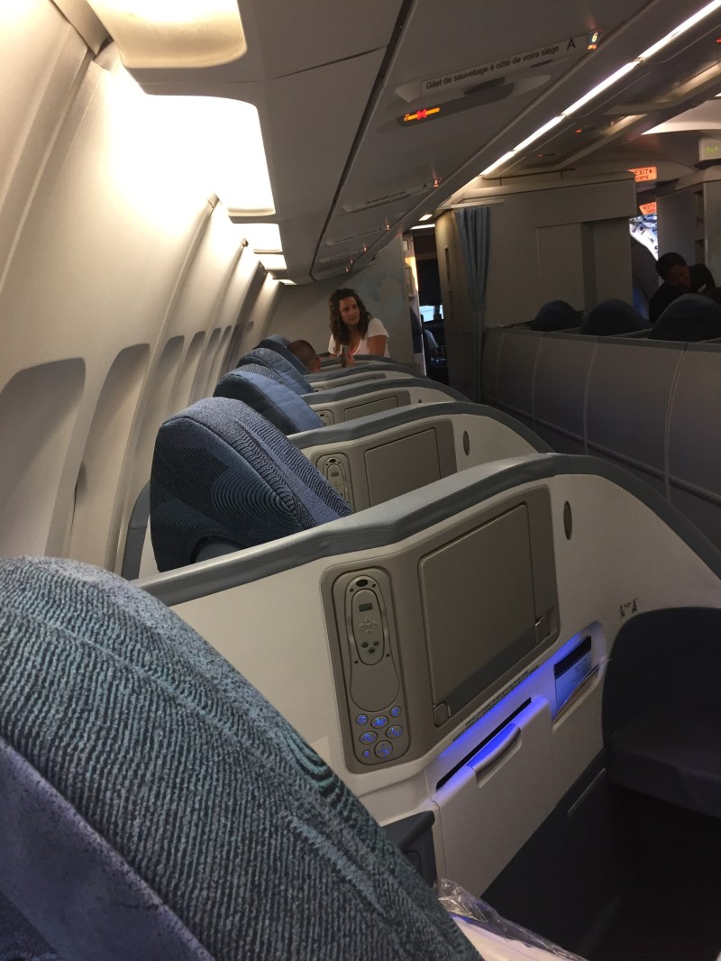 Pour les vols intercontinentaux, j’ai toujours été fidèle à Air France parce que ma tante a travaillé là-bas pendant des années et avec un peu de chance, j’étais surclassée en classe affaires. C’était toujours très agréable, quand ça arrivait, environ un vol sur trois, je dirais. Les gens étaient toujours très sympathiques, parce qu’ils aimaient beaucoup ma tante, et puis la bonne nourriture et le large siège confortable sur lequel on pouvait un pouvait un peu s’allonger rendaient toujours le voyage beaucoup moins fatiguant que quand j’étais en classe économique.