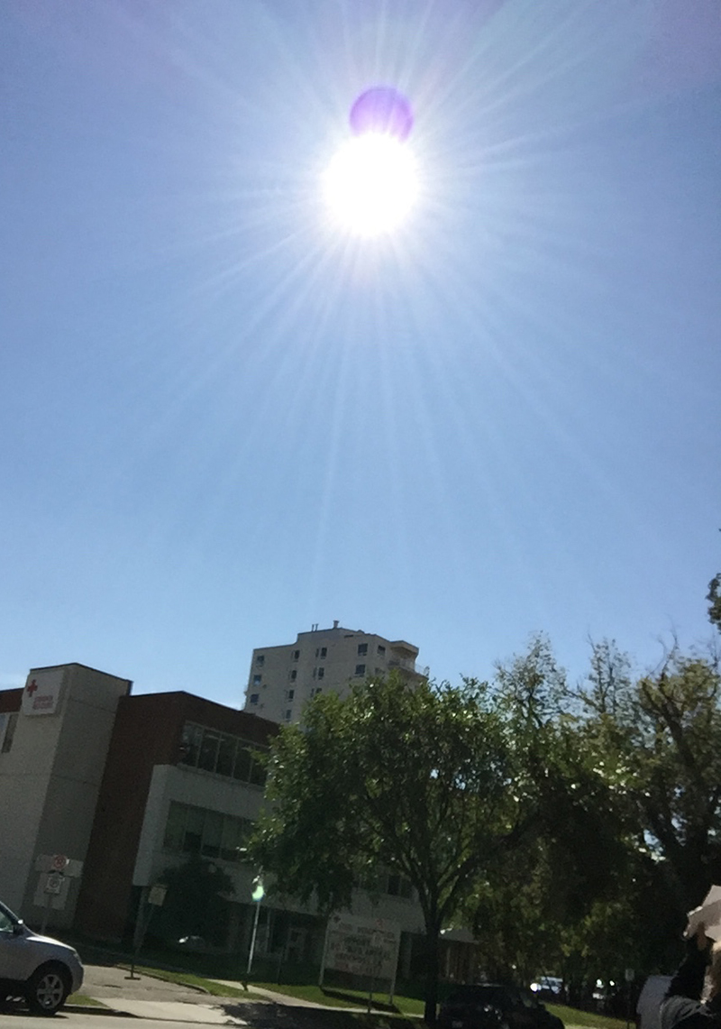(Photos prises avec mon téléphone au maximum de l’éclipse solaire partielle du 21 août (11:30am en Alberta) et que je ne peux absolument pas expliquer!)