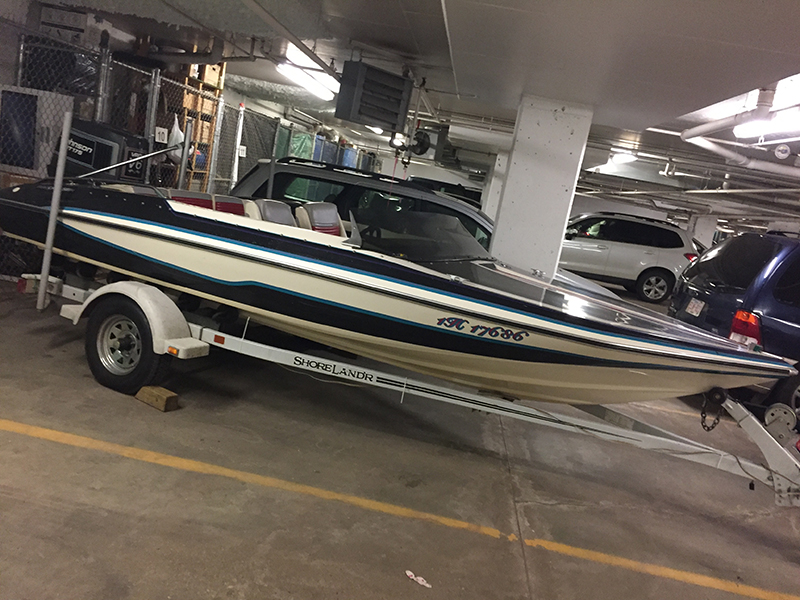 Donc ça n’a pas été difficile, comme pratiquement tout le monde a un bateau ici. J’ai demandé conseil à mon voisin Bill, et on a trouvé un type qui vendait le bateau de ses parents qui entraient en maison de retraite, un Glastron de 1989, pour un peu plus de cinq mille dollars, avec en plus le bidule pour le transporter.