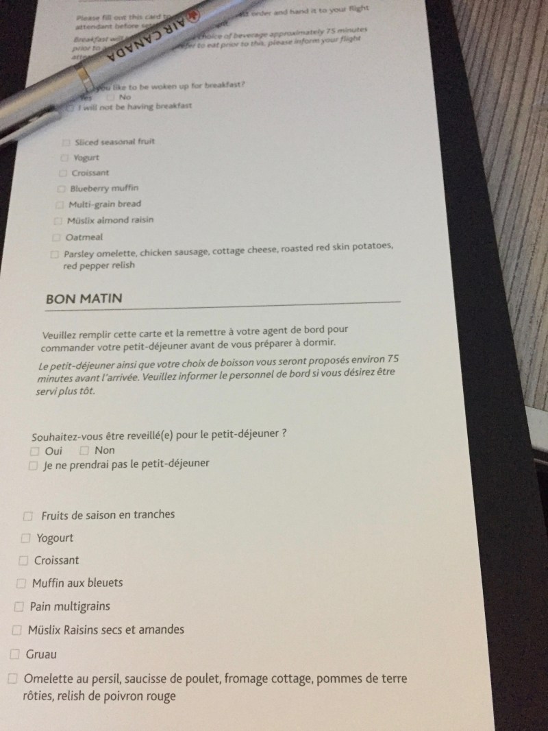 Air Canada aussi salue ses clients par une bel anglicisme de plus en plus à la mode : « Bon matin ». Comme si le mont « Bonjour » n’existait pas déjà en français. Quand quelqu’un lance un « Bon matin », c’est comme si quelqu’un me crachait au visage ; je me retiens de ne pas leur remettre autrement leur crachat. Pour rester civilisé, je ne réponds pas, faisant comme si je n’avais rien entendu… Il m’arrive parfois de dire à la personne que le mot « Bonjour » existe… Si on doit voir la même personne un peu plus tard, faut-il s’attende à ce qu’elle nous salue d’un « Bon 9 h 25 », ou « Bon midi moins cinq » ? La plupart du temps, et ce n’est pas seulement à cause du « Bon matin », ces personnes me sont plutôt antipathiques, ne serait-ce que par leur superficialité, bref le genre de personne que je préfère ne pas voir trop souvent…