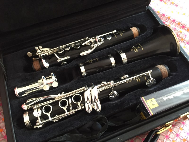 Bref, pour me changer les idées (de ma mère et du boulot), saurez-vous deviner ce que j’ai fait cet après-midi? Eh oui, j’ai craqué, je suis allée dans l’adorable petit magasin de la frangine de ma copine Geneviève, au Coin des bois, et j’ai passé l’après-midi à essayer des clarinettes! C’était génial, parce que je ne m’y connaissais vraiment pas en types de clarinettes et sonorités et qualité et l’acoustique et bois et trous, mais elle m’a tout expliqué, fait essayer, fait écouter, m’a appris des trucs très intéressants, et j’ai rapidement réussi à faire la différence entre tout ça et à trouver ce qui me plaisait exactement. Et il se trouve que finalement, la clarinette qui me plaisait le plus n’était même pas la plus chère, donc je n’ai pas un truc de super vachement pro, juste une très bonne clarinette non-étudiante. En plus, la tata et la sister ont participé généreusement et on a pu déduire la TVA et… et… donc j’ai une nouvelle clarinèèèèèèèèèèèèèètte!!!! Une Buffet Crampon RC.