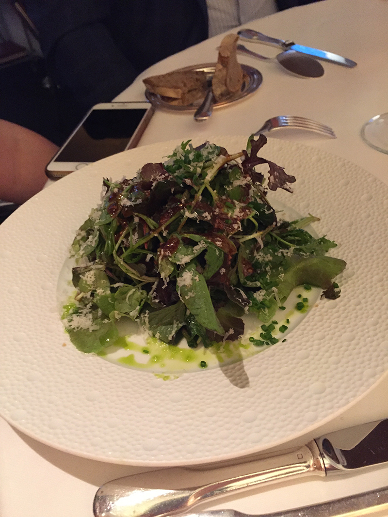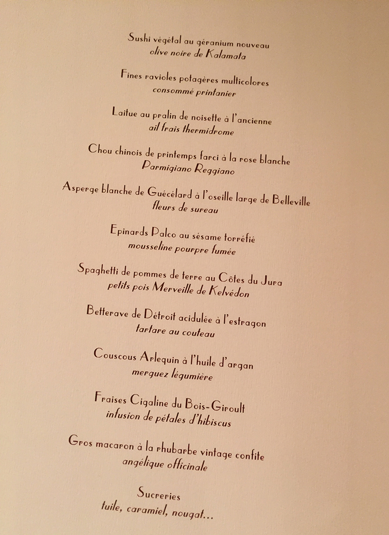 Ma frangine américaine, deux de ses amies et moi, avons été invitées par le mari de la frangine à dîner au restaurant Arpège pour célebrer l’anniversaire de ladite frangine. Je dois avouer que je n’étais pas très enthousiaste au départ, parce que je ne suis jamais confortable dans les endroits très huppés, je n’avais strictement rien de décent à me mettre, et je me sentais assez vaseuse ce soir-là.