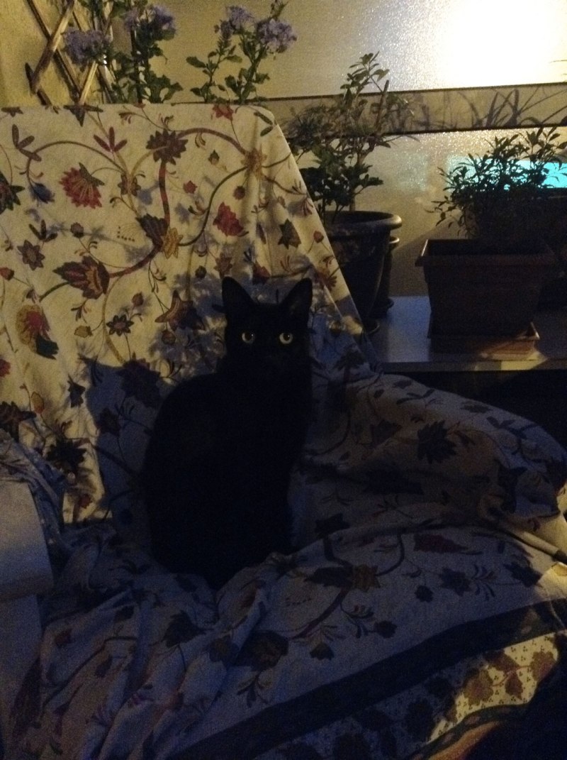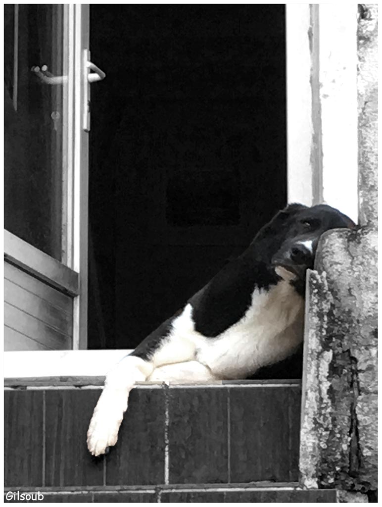 Au frais alors que le dimanche lentement se retire, il y en a une qui profite jusqu’à la nuit du calme de la rue. Valérie de Haute Savoie.