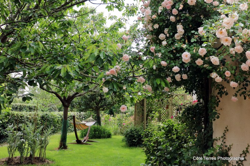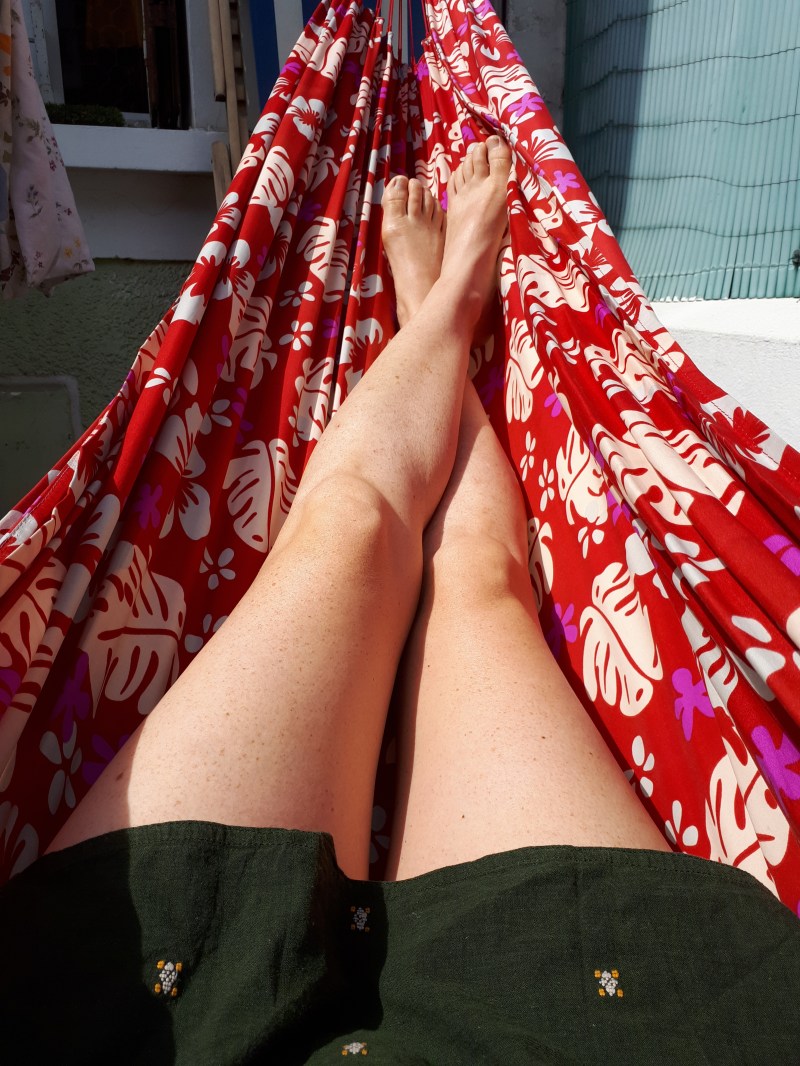 Après avoir patouillé toute la journée au jardin, une sieste reposante dans le hamac… catherine.