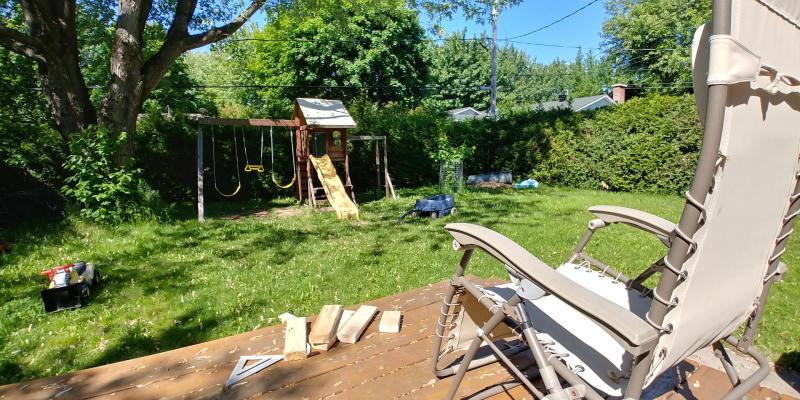 Du soleil, un jeu d’enfant, une chaise longue et une construction en cours (ordre aléatoire), voilà qui résume bien mes dimanches du printemps! Nanouk.