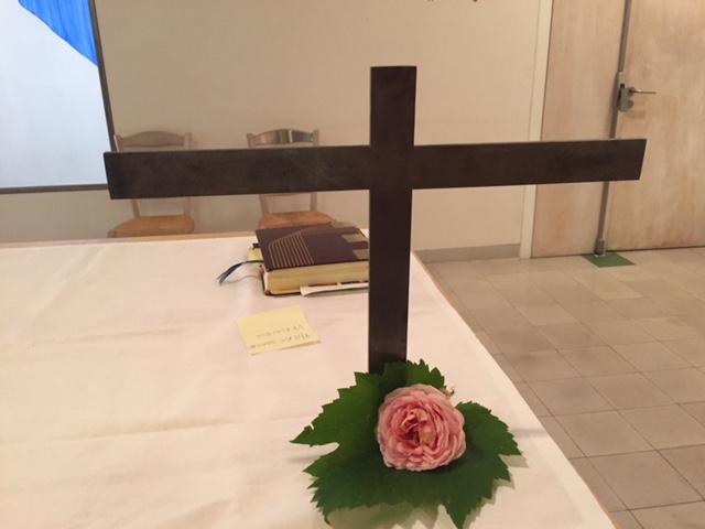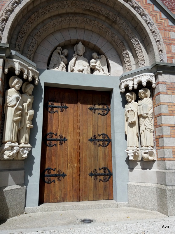La messe du dimanche avec la porte de l’église de Mers-les-Bains (Somme). Ava.