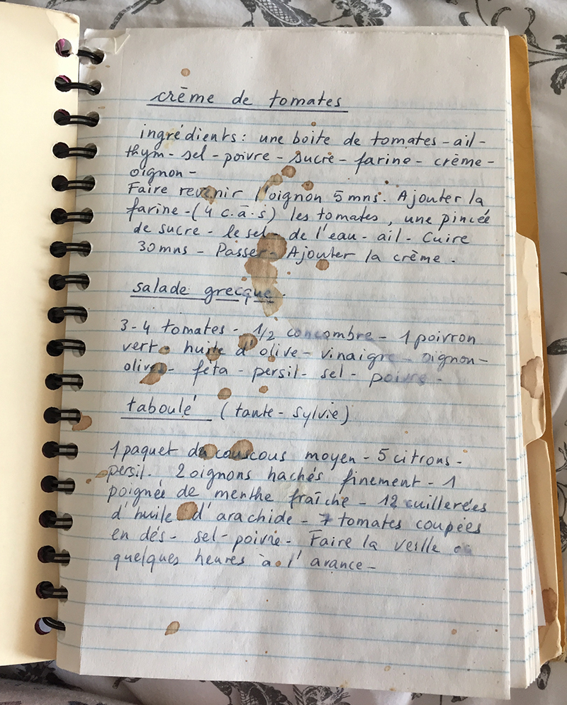 J’aime bien l’écriture de ta mère. Pour les recettes, je ne promets rien… Je suis TRES salade composée, en été 😀 Rien envie de cuisiner!