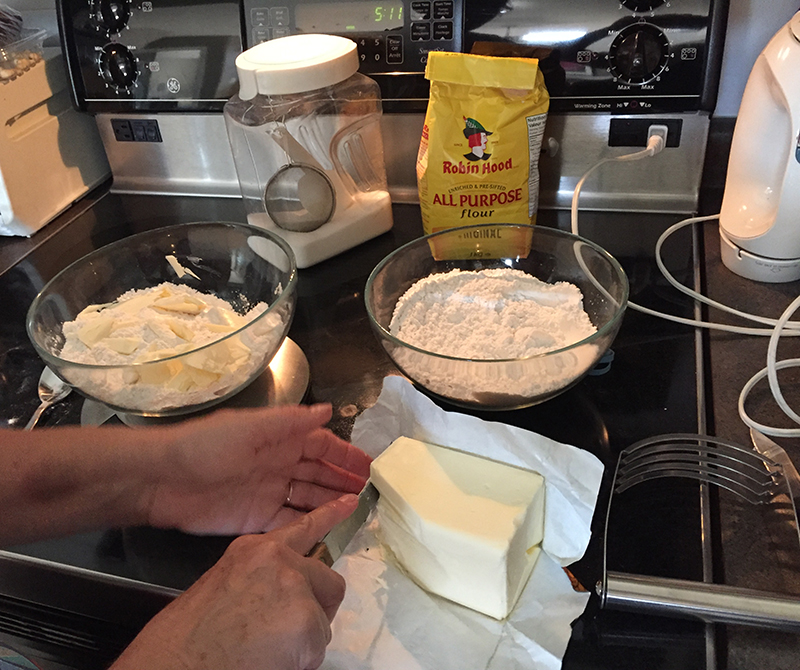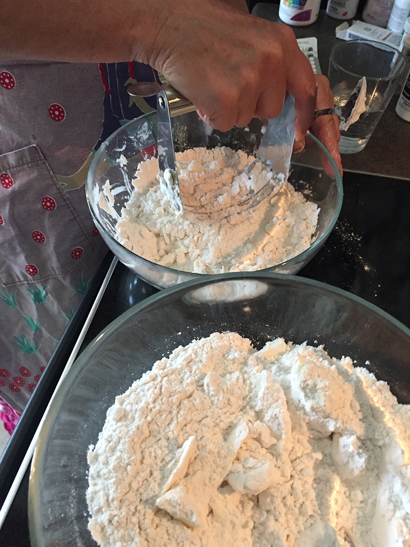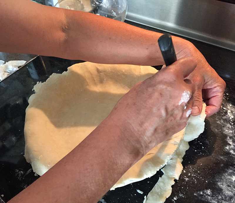 L’autre jour, je suis allée dîner chez une chère collègue maintenant à la retraite et son mari et sa soeur, Susan. Je ne sais plus comment on en est arrivés là, mais la conversation s’est tournée vers les pies, ces tartes nord-américaines recouvertes de pâte par-dessus les fruits. J’en ai fait quelques uns pas trop moches et délicieux: des bluberry pies, des peach pies, etc. Et Susan, qui est elle aussi à la retraite, a avoué qu’elle n’avait jamais fait de pies de sa vie! Elle en avait fait en achetant ces moules qu’on trouve avec de la pâte congelée pré-préparée, et elle avait fait des gâteaux et des cookies, mais elle n’avait jamais fait sa propre pâte à tarte/pie. Ca m’a énormément choquée!
