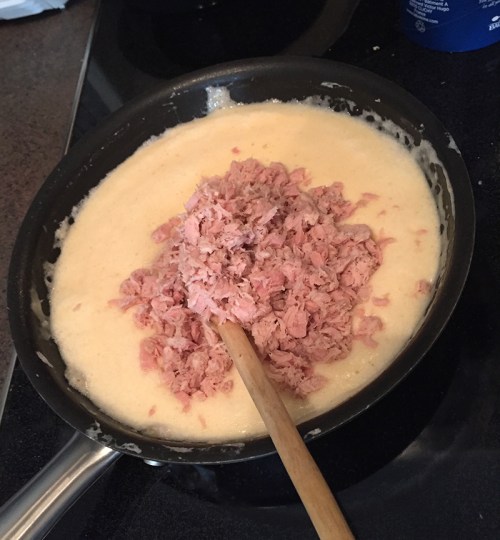 J’ai ensuite écrasé une boîte de thon au naturel et l’ai ajouté au mélange.