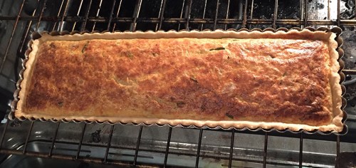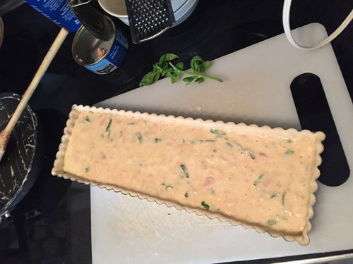 Faire chauffer le four à 190 °C, étaler la pâte dans un moule à tarte et la faire blanchir 5 mn. Mélanger les autres ingrédients, verser l’appareil sur la pâte et remettre le tout à cuire environ 30 mn. Déguster avec une salade verte, une tomate coupée en morceaux et du fenouil frais. Délicieux!”