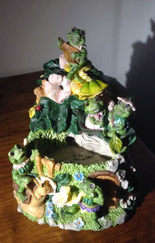 Ma petite fontaine à eau, qui chante en même temps que l’eau s’écoule de la fleur rose. Valérie de Haute Savoie.