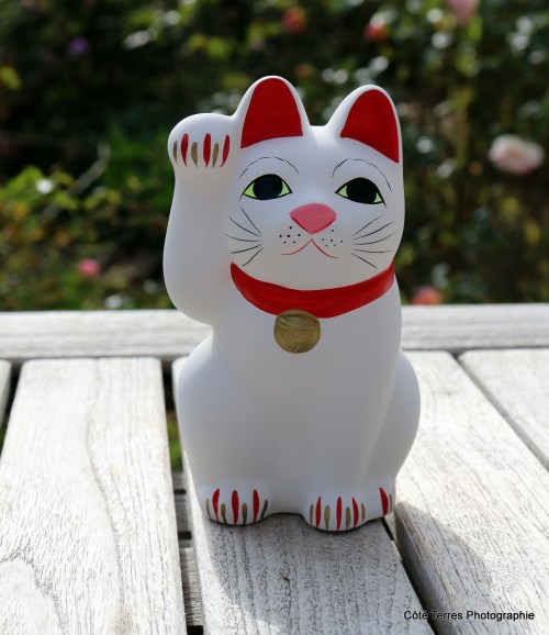 Le petit chat que j’ai ramené du Japon, le Manekki-Nekko, qui porte chance et fortune à qui veut bien y croire. catherine.