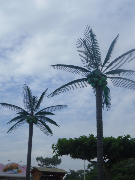 Palmiers en plastique du restaurant Acapulco à Saint Georges de Didonne en Charente Maritime. Ava.