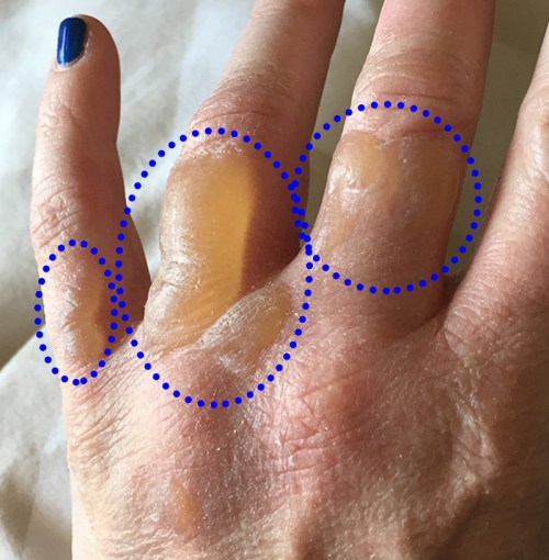 Oh ! Je sais ce que c’est pour avoir vécu cela il y a longtemps et… je m’en souviens encore ! Dans mon cas c’était avec de l’eau bouillante et du miel… Brûlure très sérieuse sur une grande surface ! J’ai dû, pendant une longue période de temps (j’oublie combien), aller tous les jours à la clinique pour changer les pansements. Et pendant des années, longtemps après la guérison, j’avais le réflexe de toujours protéger cette main du froid, du chaud, des chocs, etc. J’espère que ce ne sera pas ton cas.