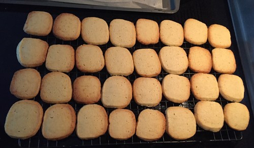 Après ça, essayer de ne pas se jeter du beurre fondu brûlant sur la main en se préparant le dîner, parce que si ça arrive, on est si mal en point pendant la soirée, la nuit, et la journée suivante, qu’on n’a pas le courage de terminer les cookies. Quand on arrive enfin à avoir le courage de les terminer, il suffit de