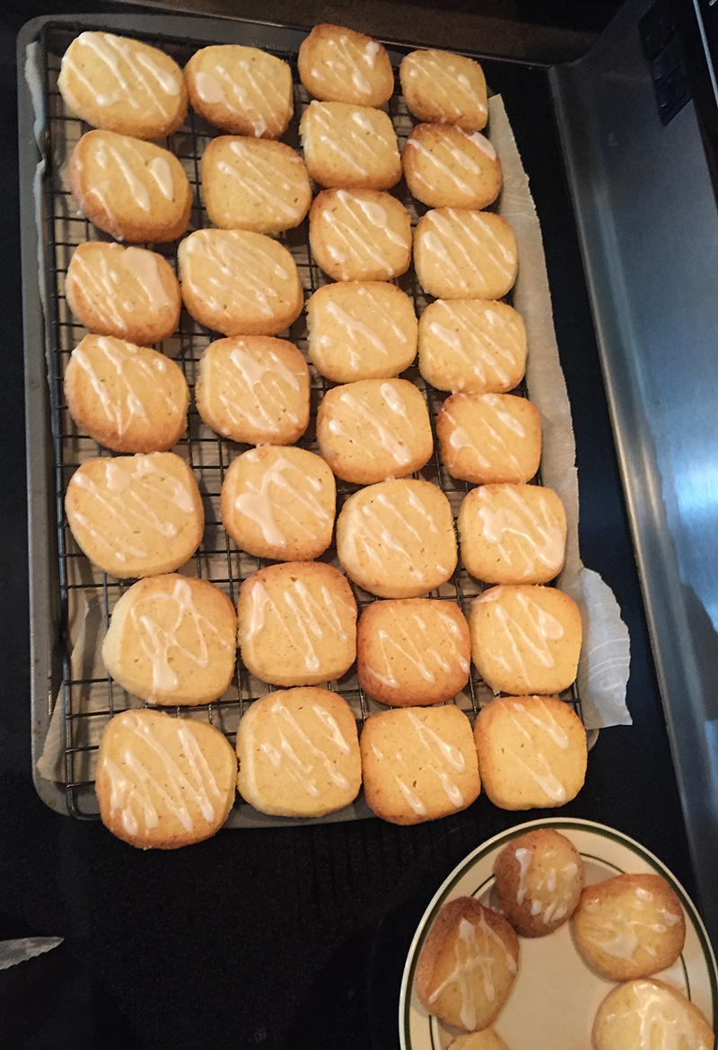 3. Pendant que les cookies refroidissent, mélanger le sucre glace et le jus de citron, puis en décorer joliment les cookies en zig-zag.