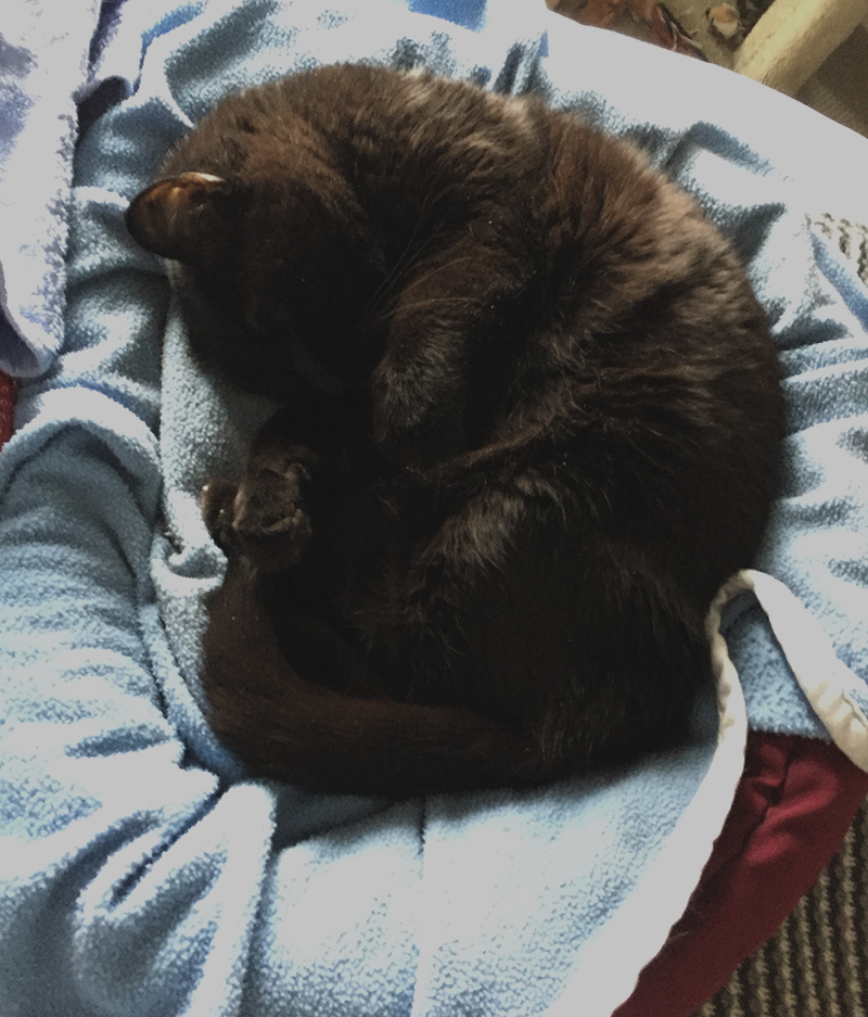 En fait, Calinette ne va pas si mal. Elle a retrouvé de l’énergie, elle est toujours aussi câline, et elle est aussi têtue et féroce qu’avant ses problèmes de pression artérielle. Mais elle continue à maigrir, alors je lui donne autant de petites gâteries que possible et on se partage même une boîte de thon deux ou trois fois par semaine. Je sais que le thon en boîte n’est pas très bon pour les chats mais on n’en est plus là.