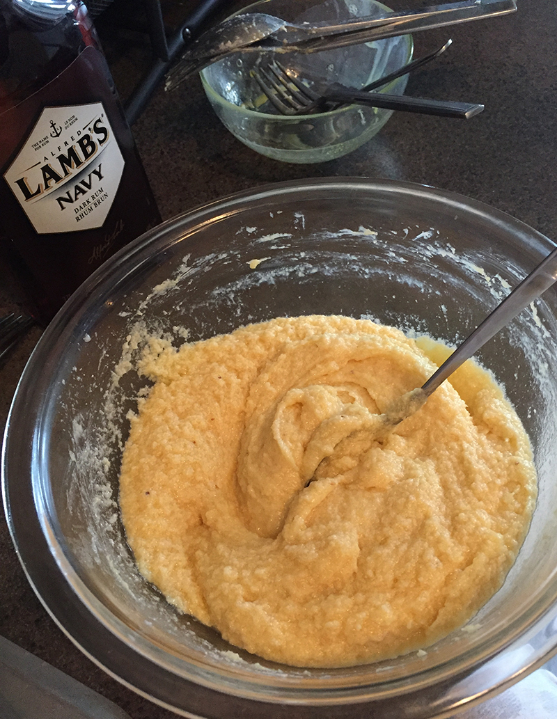 - Faire une crème d’amande avec 120g de beurre pommade, 120g de sucre, 120g d’oeufs, 120g d’amandes moulues, et 3 cuillères à soupe de rhum.