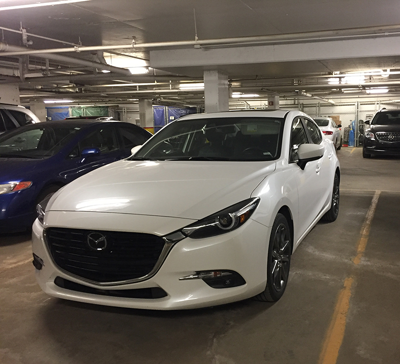 Hier soir, donc, j’ai atterri vers 22 heures, me suis trainée avec mon sac qui pesait un âne mort jusqu’à l’agence de location de l’aéroport, et les ai suppliés de me filer une Mercedes CLA 250 parce que j’en avais marre de devoir m’habituer à encore une nouvelle voiture. Malheureusement, ils n’avaient qu’une Mazda 3. Et mes lecteurs qui ont une mémoire d’éléphant se souviendront que ma petite Albertine chérie était… une Mazda 3! Donc j’étais hyper contente!